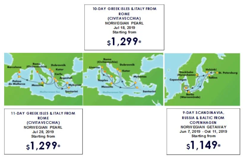 With exciting cruises to the cool Baltic Capitals, the warm Mediterranean or the ancient ports of Egypt & the Greek Isles, Norwegian will take you there in style – your style. Unpack once and sail aboard Norwegian's innovative ships. Plus, Norwegian offers more dining choices than any other cruise line in Europe with extended hours to give you more time ashore.